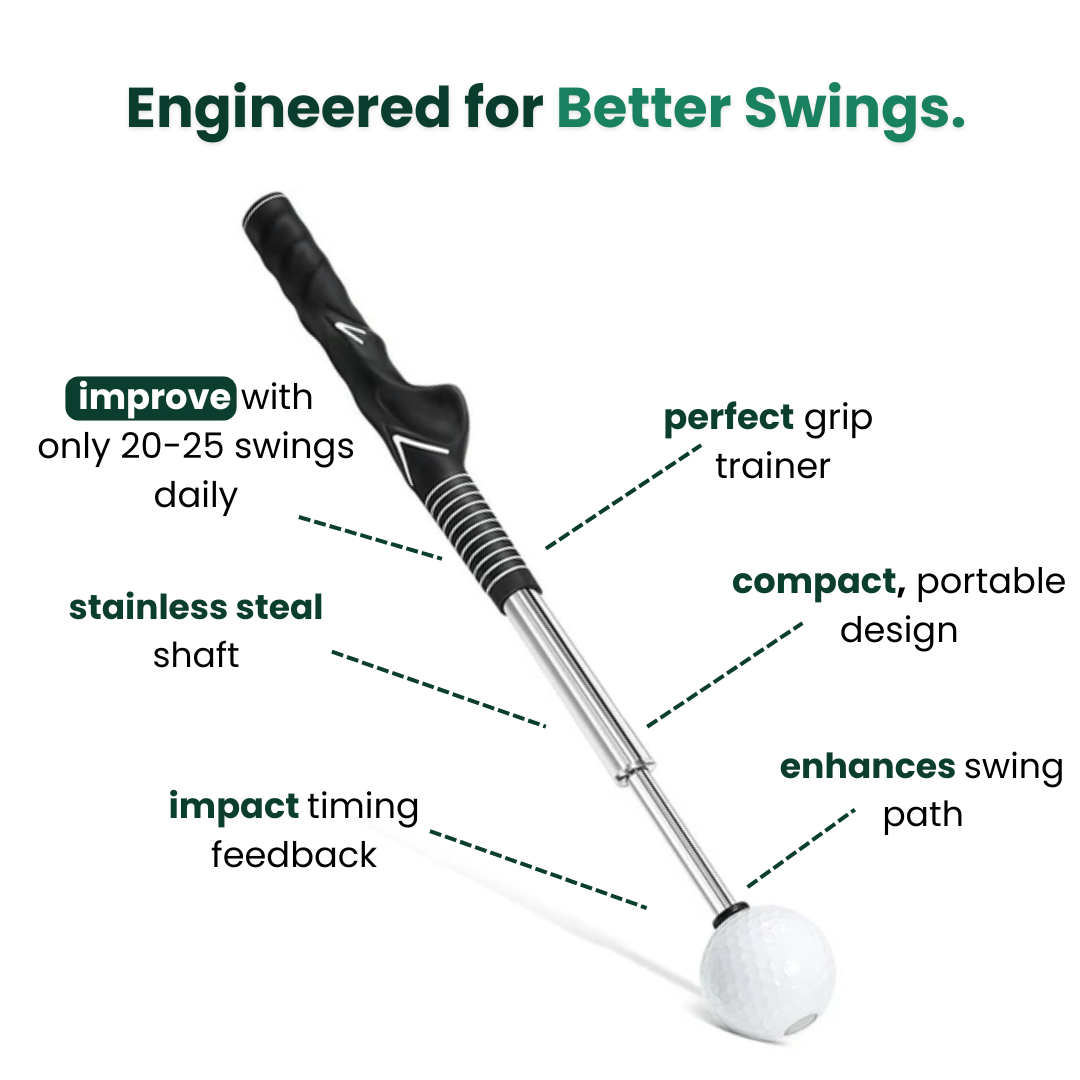 The trainer features a molded grip that teaches correct hand placement automatically, while the internal tempo click lets you know when you’ve hit peak swing speed for more power and consistency. Its compact telescopic design makes it easy to use anywhere—even indoors—so you can train without needing space. Built to feel like a real club, it delivers an authentic, natural swing motion that builds true muscle memory you can take straight to the course.